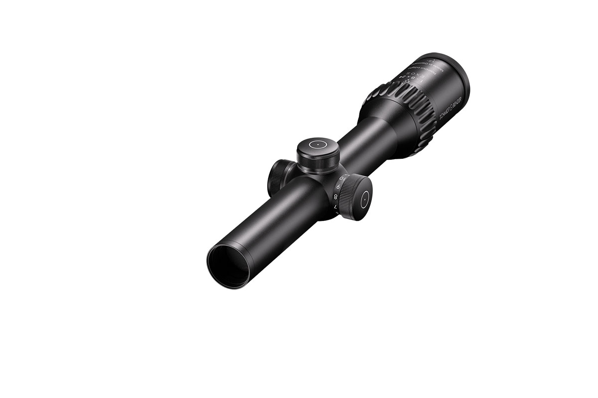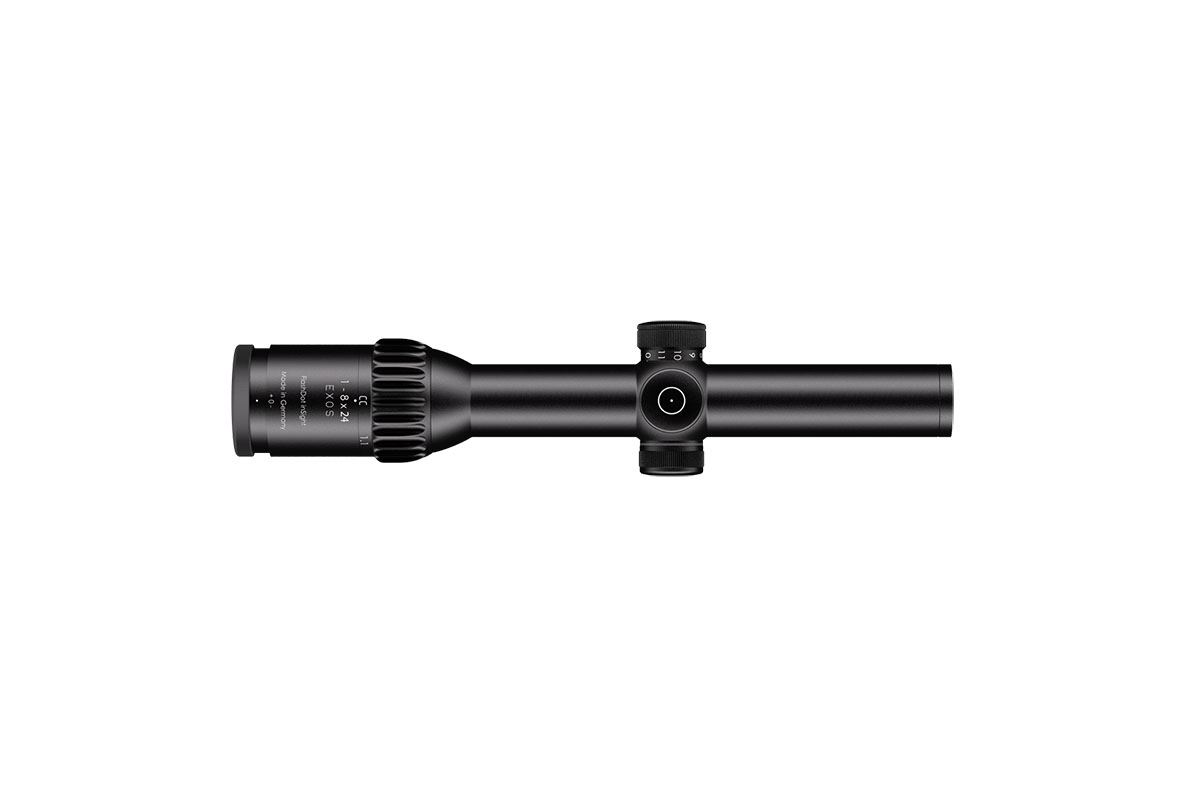 4060537047141 The 1‑8×24 Exos from Schmidt and Bender is a highly versatile, premium hunting riflescope designed for both rapid target acquisition and effective mid‑range shooting. With a magnification range of 1–8× and a 24 mm objective lens, it combines the speed of a red‑dot style sight with the precision of a full zoom optic. Key Features and Benefits True 1× magnification at the low end enables fast, intuitive shots with both eyes open and no magnification distortion. Higher magnification transitions up to 8×, offering flexibility across a wide range of distances. Wide field of view: approximately 35.3 m to 4.9 m at 100 m, providing excellent situational awareness at low magnification and fine detail at higher zoom. Generous eye relief of 90 mm for comfortable and safe mounting across different rifle platforms. High optical quality with an exit pupil of approximately 9.6–3.0 mm and light transmission over 90 %, ensuring bright, crisp imagery even in low light. Compact, durable build: 30 mm main tube, length approx. 293 mm, weight around 595 g. Adjustable illuminated reticle in certain versions for optimal visibility in varied lighting conditions. Technical Highlights Magnification: 1–8× Objective Lens Diameter: 24 mm Field of View: approx. 35.3–4.9 m @100 m Exit Pupil: approx. 9.6–3.0 mm Eye Relief: 90 mm Transmission: >90% Tube Diameter: 30 mm Length: approx. 293 mm Weight: approx. 595 g Ideal Use Case The 1‑8×24 Exos is perfect for hunters and shooters engaging fast-moving game or participating in driven hunts where immediate reaction is needed at short distance, while still providing enough zoom to clearly identify and shoot at greater ranges. Its blend of speed, clarity, and field-ready design makes it a versatile, one-scope solution.