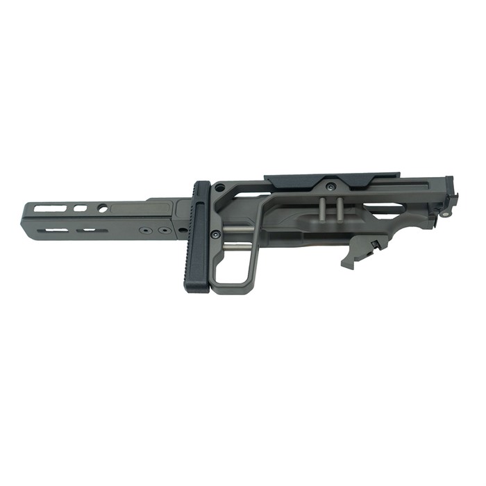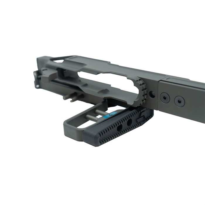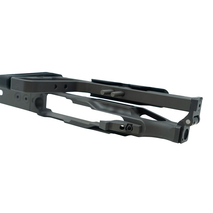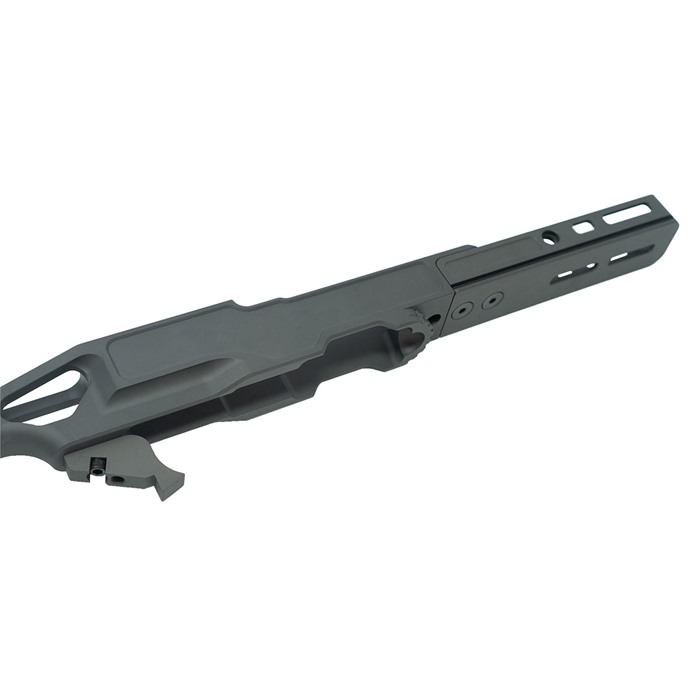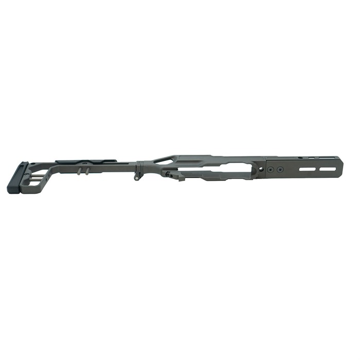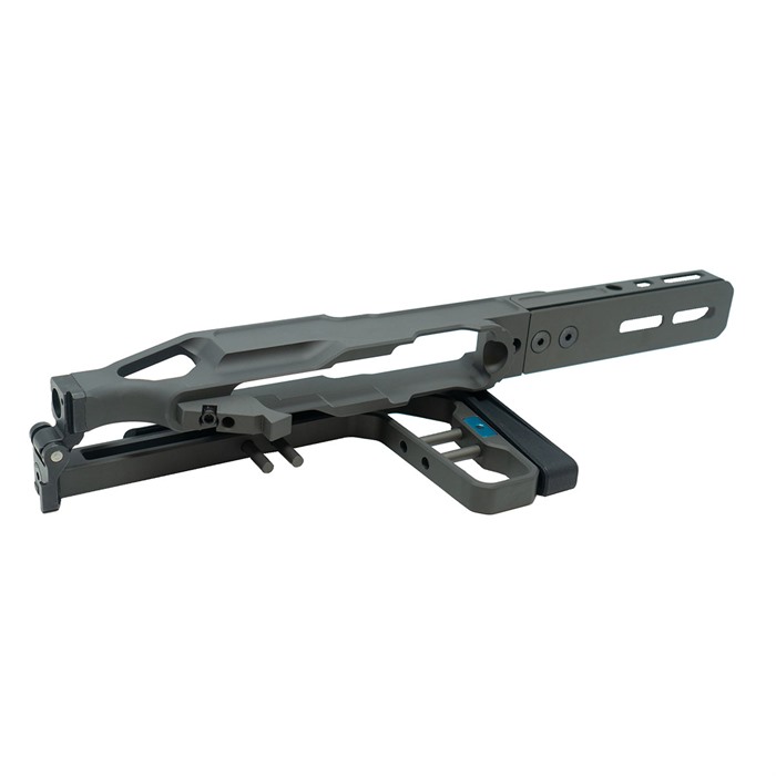 The LaChassis 10/22 is the next evolution of 10/22™ compatible chassis from Grey Birch Solutions. The end goal in building LaChassis 10/22 has always been a lightweight, modular, adjustable, and secure base to firmly house the barreled action in place from two locations. Everything builds off a firm foundation. The LaChassis 10/22 is a modular chassis system built around the 10/22® platform. LaChassis 10/22 is packed with features to enhance the shooting experience with configurations ranging from short range race gun to long range precision. One of the key features of the LaChassis 10/22 is its rear tension point, adding a second location to hold your barreled action in place for precise shooting. LaChassis 10/22 Features: Magwell Cutout for Easy Magazine Changes AR Grip Compatible Mounting Point Standard Picatinny Stock Mount (Compatible with all most Picatinny Mounted Stocks) Modular 10" Forend Forend M-Lok and Arca-Swiss Compatible Ambi QD Points on Forend & Stock Folding Stock (Stock can be Locked in the Fixed Position) Length of Pull and Cheek Weld Adjustment Can be used for left- or right-hand receivers Specs: Weight: 688 grams Length Of Pull: 13" - 14.5" Overall Length: 25 - 26.5" Overall Length Folded: 16" Material: 6061 T6 AL Finish: Clear Hard Anodize Rail Length: 10" Tools Required: 5/64 Allen Key 3/32 Allen Key 1/8 Allen Key 5/32 Allen Key ** LaChassis 10/22 can be permanently locked into a fixed (non-folding) position. *** Compatible with most 10/22® pattern receivers and trigger groups without modification.