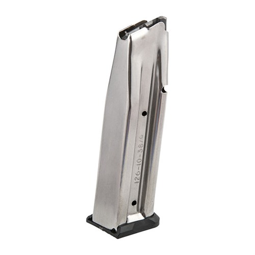 STI:n MAGAZINES, 126MM 10-ROUND CARRY MAGAZINE, .38S on täydellinen valinta kilpailukäyttöön. Nämä korkean kapasiteetin patruunat ovat TIG-hitsattuja ja lämpökäsiteltyjä, ja niiden ruostumattomasta teräksestä valmistetut rungot kestävät vaativaa käyttöä ilman halkeilua tai vikaantumista.