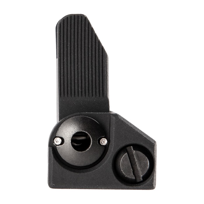 Rugged, flip-up sights provide failsafe backup when your primary optic or red dot sight fails. Sight body flips up easily when you need it and locks securely in place under powerful spring pressure and two locking detent balls, so it can’t be accidentally bumped down until you hit the spring-loaded button on the left side of the base to retract it. Positions apertures at the same height as factory sights, simplifying integration of these sights on your rifle. Base clamps securely to any military or commercial Picatinny rail using a standard flathead screwdriver. No protruding knobs or levers to catch on brush, clothing, or other equipment. Sturdy, protective “ears” shield posts and apertures from impact. Front sights clamp to handguard accessory rail on the same plane as flattop and are only ½" high when folded. All models have M4-type post that’s elevation adjustable in ½ MOA increments.