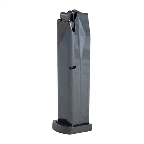 Factory, double stack 9mm magazines is ultra-reliable in combat or competition. High-tech manufacturing techniques allow seamless construction for snag-free follower movement and smooth insertion into the mag well. Self-lubricating follower and is injection molded from high-strength polymer for durability. Numbered witness holes on the backside allow easy viewing of remaining ammunition. Built from high carbon, heat-treated steel for maximum strength; includes a high tensile strength music wire spring that resists memory and won’t weaken over time. Removable base pad allows easy cleaning. 17-Round comes with a synthetic base pad and an attractive, high-gloss blued finish.