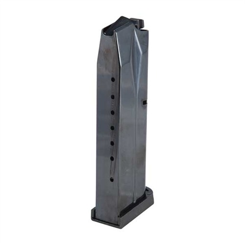 SPECS: Body - Carbon steel, heat treated. Spring - Music wire. Follower/Pad - Polymer, black. Fits all 9mm Beretta 92’s, except Type-M and old Model 92/92S that use a single stack magazine. 17-Rd – Blued, gloss finish, polymer base pad.