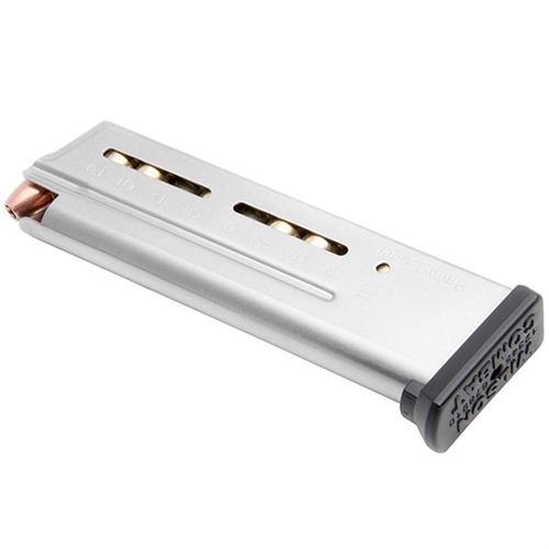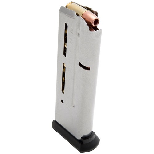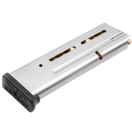 In the quest for flawless magazine function across a wide variety of custom and production handguns, Bill Wilson has redesigned the Elite Tactical 9mm 1911 magazines to feed more smoothly, seat easier and lock back positively in a wider spectrum of guns than ever before. The “Next Generation” ETM 9mm magazines have arrived and like other Wilson Combat Magazines will raise the bar for 1911 pistol reliability. After months of intensive research and testing by Bill Wilson in a myriad of custom and factory 9mm 1911’s, Wilson Combat believes they have solved the issue of magazine reliability in a single stack 9mm 1911. These Next Gen ETM magazines have a redesigned tube with a small front ramp to prevent nose down feeding with short or hollow point rounds. A redesigned back spacer accommodates a wide variety of long-loaded ammunition and a stainless steel follower and extra power spring ensure slide lockback even in guns with marginal or incorrectly fitted slide stops. Bill Wilson himself has logged over 10,000 rounds of various factory and reloaded 9mm ammunition to develop these magazines which are suitable for competition or tactical use. Fits full size 9mm 1911 10 round capacity with numbered tube Easy to load and seat with the slide in battery Positive slide lock when empty Superb feeding with a wide range of ammunition types Steel follower for flawless slide lock-even with marginal pistols The Stainless Steel ETM has the Strongest Magazine Tube Yet Developed, Virtually Eliminating Feed Lip Cracking, Tube Spread and Cracking and General Fatigue Proprietary Multi-Step Tumbling and Finishing Process Provides Smooth Follower Operation and Insertion into the Weapon Observation Slots Moved to the Rear of the Tube, Located Exactly Where They Need to be to Maintain the Structural Integrity Removable Base Pad for Easy Maintenance and Versatility with Different Base Pad Options