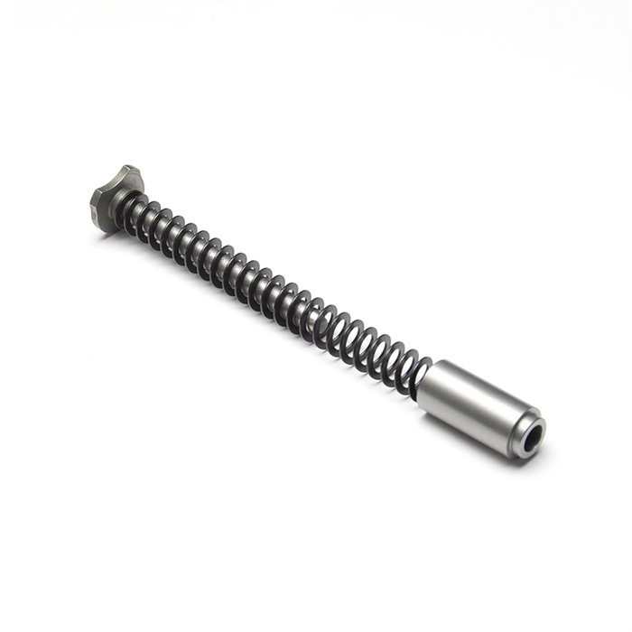 Upgrade your handguns with the Flat Wire Recoil System from Ed Brown. This set includes a stainless steel guide rod, a long lasting chrome silicon flat wire spring and plug. With this kit, experience better performance for your pistol every time you pull the trigger! Switching from conventional round wire to flatwire offers improved cycling and more tolerant to a wider variety of loads. The self contained system makes disassembly and reassembly a breeze! Recommended spring replacement at 30,000-40,000 rounds.