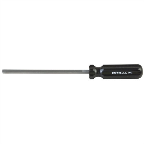 BROWNELLS 1911 HAMMER SQUARING FILE The Brownells 1911 Hammer Squaring File is a specialized tool engineered to assist gunsmiths in achieving precise 90-degree hammer hook angles during trigger jobs on 1911 pistols. Properly squared hammer hooks are essential for ensuring consistent sear engagement, resulting in a crisp and reliable trigger pull. Description and Features: This two-sided, square file is designed to simplify the process of squaring hammer hooks. With safe edges on two sides, it allows for controlled material removal without damaging adjacent surfaces, making it particularly effective when used with various hammer and trigger sear jigs. The file maintains sharp corners and flat edges even after extended use, ensuring long-term reliability in precision work. Available with or without a plastic handle, it offers flexibility to suit individual preferences. Specifications: Material: High-quality steel Length: 5 inches Width: 0.180" to 0.185" (tapered) Compatibility: Specifically designed for 1911 Auto pistols Handle: Optional plastic handle available Customer Insights: Customers of the Brownells 1911 Hammer Squaring File appreciate its precision and durability. The file's ability to establish exact 90-degree hammer hook angles has been highlighted as a significant advantage in achieving optimal trigger performance. The option to choose between a handled or handle-free version allows users to select the configuration that best fits their working style. Incorporating the Brownells 1911 Hammer Squaring File into your gunsmithing toolkit ensures precise hammer modifications, leading to improved trigger function and overall firearm performance.
