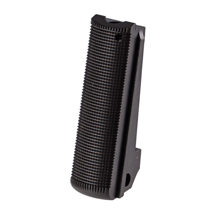 Larger Magazine Well Bevel for Faster Reloads with No Extra Bulk Unique design allows the custom gunsmith to seamlessly cut the bevel of the magwell back into the mainspring housing, allowing a much larger magwell opening without an add on magwell. Proprietary BevelBlock™ fitting block of extra material on the front ledge of the mainspring housing forms a seamless butt joint with the frame, deep into the frame’s magazine well. The BevelBlock now comes pre-machined with an angled rear bevel to make installation even simpler, while still allowing the gunsmith to shape to their own profile, if desired. Allows shooters to hit the sweet spot at the rear of the magwell during combat reloads. Machined to maximum dimensions to deliver a nice snug fit in most 1911 frames without excessive material removal. Perfect for carry applications to greatly increase the magwell opening with no extra bulk. Requires one simple machine cut for installation before final shaping. Available in flat and smooth, or custom quality checkered at 20, 25 or 30 lines per inch by master metalsmith Pete Single. Perfectly formed diamonds improve grip and control during rapid fire. Rounded heel increases shooting and carry comfort. Precision machined from tough, solid barstock for extreme durability.
