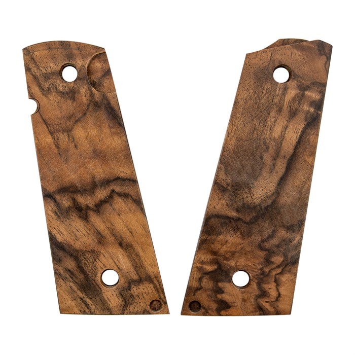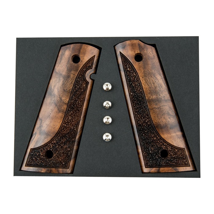 - Aseta uudet 1911 Eksoottiset Puukahvat aseesi kahvan kehyksen kanssa.