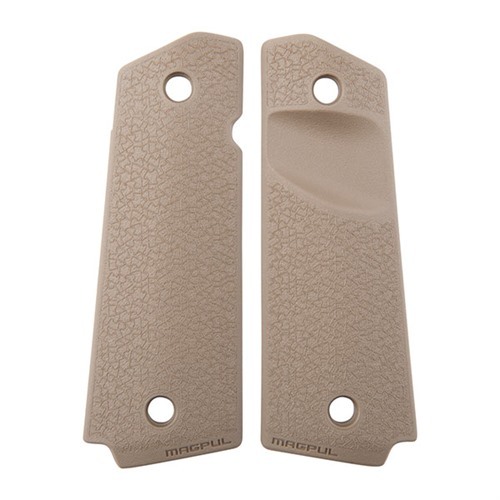 Constructed of heavy-duty reinforced polymer, MOE 1911 Grip Panels have a unique diamond-shaped cross section to prevent twisting in the hand, an aggressive magazine release cut-out, a positive anti-slip texture, and are compatible with ambidextrous safeties. They provide the 1911 grip with advanced features, improved control characteristics, and Magpul value. The grips are designed to fit full-size framed 1911s with standard grip screw bushings. Made in the USA. FEATURES Reinforced polymer construction Fits full size frame 1911s and copies with standard grip screw bushings Aggressive magazine release cut-out Compatible with ambidextrous safeties CHOICE OF SURFACE TEXTURE TSP (Trapezoidal Surface Projections) Grip Texture Anti-Slip Grip Texture - Unique diamond-shaped cross-section to prevent twisting in the hand SPECS Platform: 1911 Full Size Thickness, max: 0.25 in. Weight: 1.1 oz.