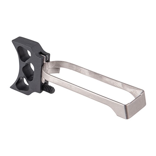 Fusionin Pro-Series Match Trigger, K-HOLE (skelentonisoitu) on pitkä, hopeanvärinen, alumiininen ja säädettävä liipaisin, joka on suunniteltu kevyeksi taistelussa/sovitusliipaisimeksi 1911-pistoolille. Liipaisimen kaari on myös säädettävissä, jotta saat hyvän istuvuuden kehykseesi. Mukana on sahattu etuliipaisimen alusta ja säätöruuvi. Joitakin sovitustöitä saatetaan tarvita.