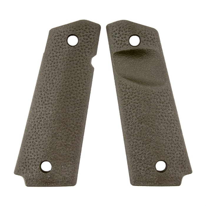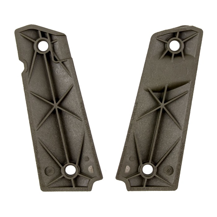 Evolved from Magpul's original moe 1911 grip panels, the 1911 grip panels with tsp texture offers the user a more aggressive texture allowing for better control of the weapon in all environments. Constructed of heavy-duty reinforced polymer, the grips have a unique diamond-shaped cross section to prevent twisting in the hand, an aggressive magazine release cut-out, aggressive tsp texture (trapezoidal surface projections) for positive control, and are compatible with ambidextrous safeties. The grips are designed to fit full size framed 1911s with standard grip screw bushings. Made in the USA. FEATURES Reinforced polymer construction Fits full size frame 1911s and copies with standard grip screw bushings Aggressive magazine release cut-out Compatible with ambidextrous safeties Unique TSP diamond-shaped cross-section to prevent twisting in the hand for positive control in all environments SPECS Platform: 1911 Full Size Thickness, max: 0.25 in. Weight: 1.1 oz.
