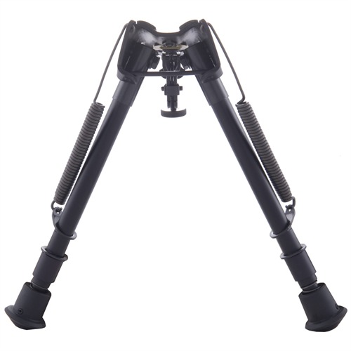 Mounts to QD swivel studs on bolt action and single-shot rifles for ultimate field accuracy. Won't change zero; added weight steadies gun. Spring-loaded, telescoping legs adjust quickly, fold parallel to barrel for carrying. Series 1A2 bipods have solid base and do not swivel or rotate. Series S bipods rotate 45° for instant leveling on uneven ground. Buffer springs and adjustable tension on hinged base help eliminate tremor. All Models available in either Series. All Adapters fit either Series bipods. Not recommended for lever actions.