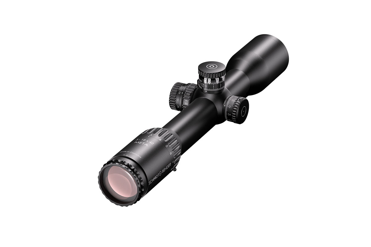 4060537066456 The 3-18x42 Meta combines exceptional optical clarity with powerful performance, delivering a premium shooting experience for both hunters and precision marksmen. Its wide field of view, paired with the LP7 reticle featuring an illuminated red dot, provides superior situational awareness and lightning-fast target acquisition. Unmatched precision is achieved through patented Zero Deviation Technology, a parallax adjustment starting from 20 m, and a generous internal adjustment range, ensuring consistent accuracy even at long distances. For enhanced mounting flexibility, the 3-18x42 Meta features the innovative “LPI” system – an illumination control integrated into the parallax adjustment turret. This smart design improves ergonomics and handling, offering smooth operation for both right- and left-handed shooters. The slim, streamlined construction of the scope makes it perfectly compatible with clip-on devices, while the reinforced ocular ring allows secure attachment of dust covers or add-on optics. With its blend of cutting-edge technology, robust build quality, and refined usability, the 3-18x42 Meta stands as a true symbol of precision engineering — designed to deliver reliability, adaptability, and clarity in every shooting scenario.