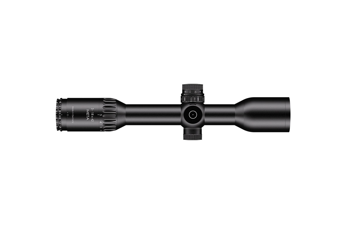 4060537008845 The 3-18x42 Meta combines exceptional optical clarity with powerful performance, delivering a premium shooting experience for both hunters and precision marksmen. Its wide field of view, paired with the LP7 reticle featuring an illuminated red dot, provides superior situational awareness and lightning-fast target acquisition. Unmatched precision is achieved through patented Zero Deviation Technology, a parallax adjustment starting from 20 m, and a generous internal adjustment range, ensuring consistent accuracy even at long distances. For enhanced mounting flexibility, the 3-18x42 Meta features the innovative “LPI” system – an illumination control integrated into the parallax adjustment turret. This smart design improves ergonomics and handling, offering smooth operation for both right- and left-handed shooters. The slim, streamlined construction of the scope makes it perfectly compatible with clip-on devices, while the reinforced ocular ring allows secure attachment of dust covers or add-on optics. With its blend of cutting-edge technology, robust build quality, and refined usability, the 3-18x42 Meta stands as a true symbol of precision engineering — designed to deliver reliability, adaptability, and clarity in every shooting scenario.