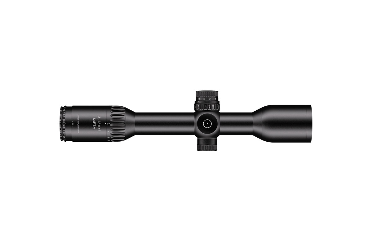 4060537066371 The 3-18x42 Meta combines exceptional optical clarity with powerful performance, delivering a premium shooting experience for both hunters and precision marksmen. Its wide field of view, paired with the LP7 reticle featuring an illuminated red dot, provides superior situational awareness and lightning-fast target acquisition. Unmatched precision is achieved through patented Zero Deviation Technology, a parallax adjustment starting from 20 m, and a generous internal adjustment range, ensuring consistent accuracy even at long distances. For enhanced mounting flexibility, the 3-18x42 Meta features the innovative “LPI” system – an illumination control integrated into the parallax adjustment turret. This smart design improves ergonomics and handling, offering smooth operation for both right- and left-handed shooters. The slim, streamlined construction of the scope makes it perfectly compatible with clip-on devices, while the reinforced ocular ring allows secure attachment of dust covers or add-on optics. With its blend of cutting-edge technology, robust build quality, and refined usability, the 3-18x42 Meta stands as a true symbol of precision engineering — designed to deliver reliability, adaptability, and clarity in every shooting scenario.