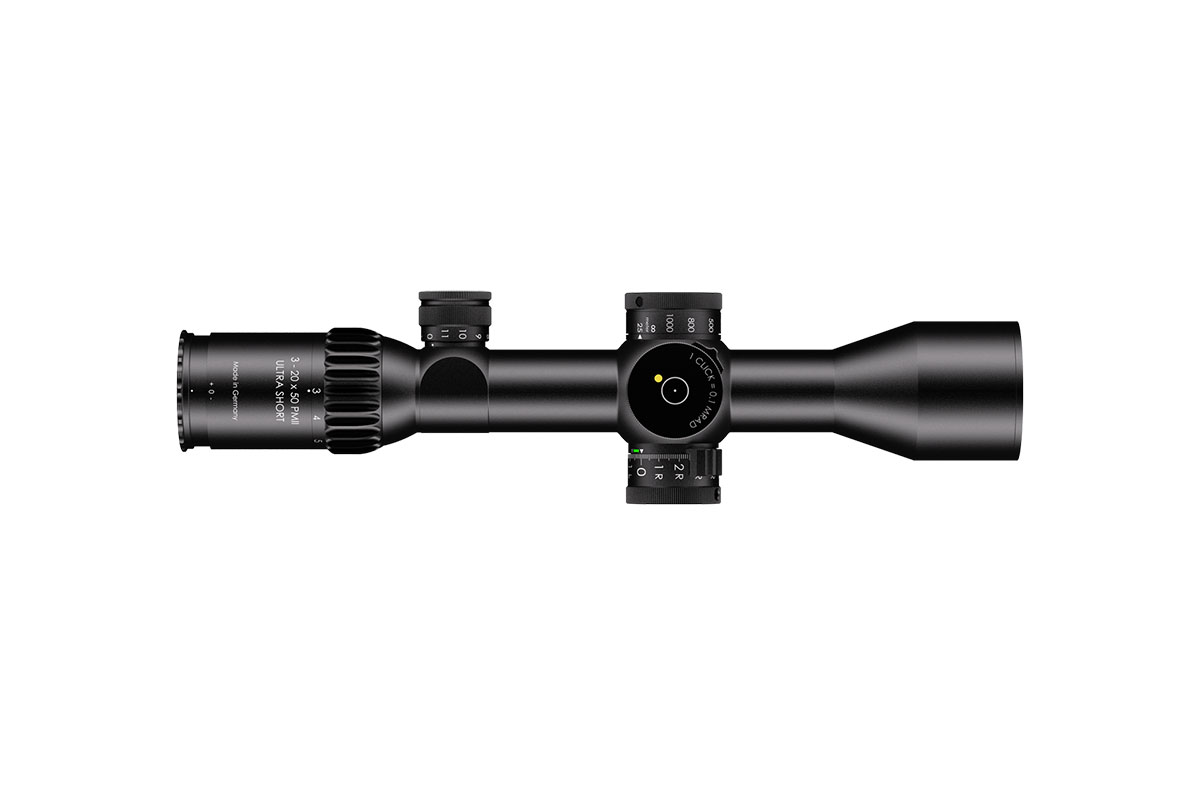 4060537039917 The 3‑20×50 PM II Ultra Short from Schmidt and Bender is a compact yet powerful riflescope engineered for high-performance engagements across medium to long distances. With its 3–20× magnification range and a 50 mm objective lens, it offers outstanding optical clarity and flexibility in a streamlined form factor. Constructed around a robust 34 mm main tube, it maintains a length of approximately 340 mm and weighs around 900 g, striking an excellent balance between size and performance—ideal for mounting on compact platforms without compromising optics. Its field of view spans roughly 13.0–2.1 m at 100 m, providing broad situational awareness at lower magnification and refined detail at the high end. The exit pupil ranges around 11.4–2.5 mm, and the eye relief is approximately 90 mm, supporting comfortable shooting in varied positions while maintaining strong light-gathering even as light fades. Advanced features include first focal plane (FFP) illuminated reticle options, side parallax adjustment (from approx. 25 m to infinity), and a low-profile elevation turret optimized for tactical precision. Key Specifications: Magnification: 3–20× Objective Lens Diameter: 50 mm Main Tube Diameter: 34 mm Field of View: approx. 13.0–2.1 m @100 m Exit Pupil: approx. 11.4–2.5 mm Eye Relief: approx. 90 mm Length: approx. 340 mm Weight: approx. 900 g With precision optics, compact build, and rugged mechanical design, the 3‑20×50 PM II Ultra Short is built for serious shooters who demand premium performance in a versatile package.