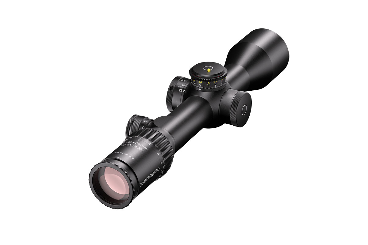 4060537030174 The 3‑20×50 PM II Ultra Short from Schmidt and Bender is a compact yet powerful riflescope engineered for high-performance engagements across medium to long distances. With its 3–20× magnification range and a 50 mm objective lens, it offers outstanding optical clarity and flexibility in a streamlined form factor. Constructed around a robust 34 mm main tube, it maintains a length of approximately 340 mm and weighs around 900 g, striking an excellent balance between size and performance—ideal for mounting on compact platforms without compromising optics. Its field of view spans roughly 13.0–2.1 m at 100 m, providing broad situational awareness at lower magnification and refined detail at the high end. The exit pupil ranges around 11.4–2.5 mm, and the eye relief is approximately 90 mm, supporting comfortable shooting in varied positions while maintaining strong light-gathering even as light fades. Advanced features include first focal plane (FFP) illuminated reticle options, side parallax adjustment (from approx. 25 m to infinity), and a low-profile elevation turret optimized for tactical precision. Key Specifications: Magnification: 3–20× Objective Lens Diameter: 50 mm Main Tube Diameter: 34 mm Field of View: approx. 13.0–2.1 m @100 m Exit Pupil: approx. 11.4–2.5 mm Eye Relief: approx. 90 mm Length: approx. 340 mm Weight: approx. 900 g With precision optics, compact build, and rugged mechanical design, the 3‑20×50 PM II Ultra Short is built for serious shooters who demand premium performance in a versatile package.