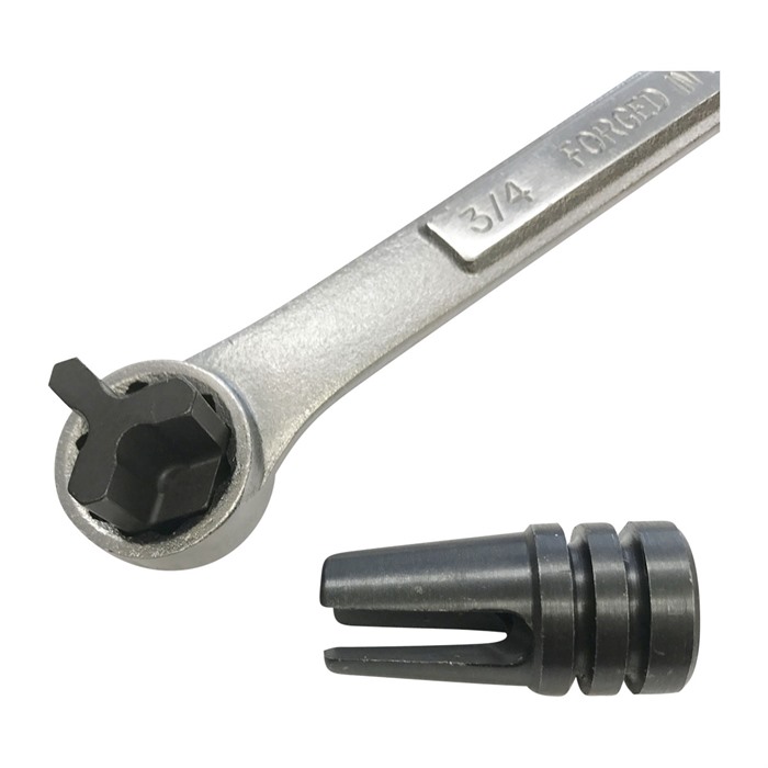 - Käytä 3 Pronged Flash Hider Wrench avainta kiinnittääksesi salamahäiritsijän tiukasti.