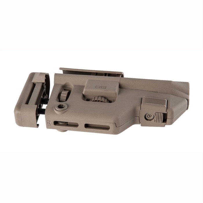 - Yhteensopivuus: B5 Systemsin Precision Stock on yhteensopiva Law Tactical Folding Stock Adapterin kanssa, mikä mahdollistaa kompaktin tai piilotetun kuljetuksen.