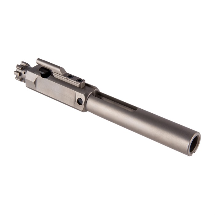 The Brownells Complete .308 Bolt Carrier Group is designed to operate reliably in DPMS LR-308 pattern rifles chambered in .308, .243, 7mm-08, .338 Federal, .260 Remington, 6.5mm Creedmoor, or any other cartridge based on the .308 Winchester. These BCGs are manufactured to the same uncompromising standards as our M16-style BCGs. Our Complete .308 Bolt Carrier Group has a bolt machined from robust 9310 steel, heat-treated and shot-peened for superb hardness. The carrier itself is fabricated from hardened 8620 steel. Both are magnetic particle inspected (MPI) to make sure there are no hidden microscopic flaws that could lead to premature failure. Carrier has forward assist notches Extractor is installed with rubber insert and spring Gas key screws are torqued and staked For use in DPMS LR-308 pattern upper receivers only; NOT compatible with Armalite rifles You can get the Brownells Complete .308 Bolt Carrier Group with a hard Black Nitride finish that is exceptionally resistant to surface wear OR a Nickel Boron coating (a dull matte silver) that’s even harder and self-lubricating to boot. Both come complete with firing pin, firing pin retaining pin, cam pin, gas rings, gas key, extractor, and ejector installed. Brownells GunTech™ Note: Unlike BCGs with a traditional Parkerized finish, the carrier on our Black Nitride bolt carrier group is not hard-chromed inside because Nitride is actually harder than industrial chrome plating.