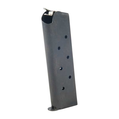 SPECS: Blued carbon steel (Blue) or natural-finish stainless steel (Stnls). Approximately 5" (12.7cm) long. Followers – Stainless steel, natural silver or black finish, flat or round contour. Some magazines have concave safety orange nylon follower.