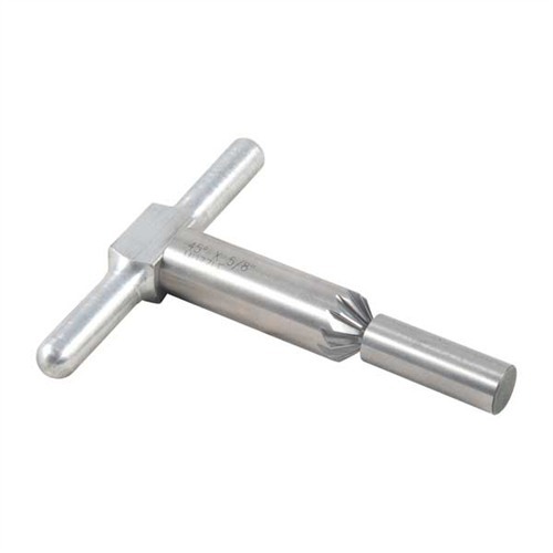 45° chamfering cutter murtuu riflingin reunat, mikä mahdollistaa puhtaan luodin poistumisen, tai se chamferoi revolverin sylinterin kammiot nopeita latauksia varten. Pakkaus sisältää cutterin, kahvan ja yhden pilotin, kaikki polypropeenilaatikossa. Vaihdettavat pilotit pitävät cutterin oikeassa linjassa. Osta ylimääräisiä piloteja, jotta voit käyttää yhtä cutteria monilla eri kaliibereilla. Muita kaliipereita varten saatavilla erikseen.