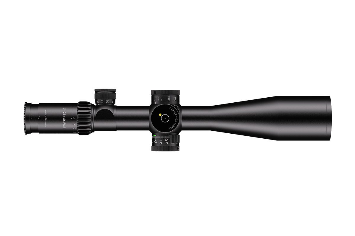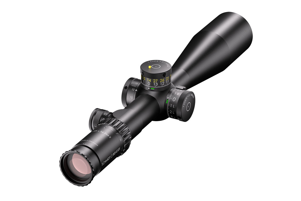 4060537065596 The 5‑25×56 PM II from Schmidt and Bender stands at the pinnacle of variable‑magnification tactical optics, engineered for long‑range precision, outstanding clarity and professional‑level reliability. With a wide 5–25× zoom range and a substantial 56 mm objective lens, it delivers exceptional light‑gathering capability, enabling crisp, bright imagery even at extended distances. Built upon a rugged 34 mm main tube, the scope accommodates large internal adjustment ranges and is designed for demanding use. It features a reticle in the first focal plane (FFP) so that scale and hold‑offs remain accurate at any magnification. The field of view spans approximately 5.3–1.5 m at 100 m, while the exit pupil ranges around 11.0–2.3 mm, and the eye relief remains generous at around 90 mm. The parallax adjustment typically extends from 10 m to infinity, enabling accurate focus from very close ranges through to extreme distances. The turret system is engineered for precision: click values as fine as 0.1 mrad (≈1 cm at 100 m) are available, and a double‑turn elevation turret combined with single‑turn windage allows vast usable correction ranges for wind and elevation. Optical transmission exceeds 90 %, and the construction is nitrogen‑filled, fog‑ and waterproof, ensuring full reliability in all climatic conditions. Key Specifications: Magnification: 5–25× Objective Lens Diameter: 56 mm Main Tube Diameter: 34 mm Field of View: approx. 5.3–1.5 m @100 m Exit Pupil: approx. 11.0–2.3 mm Eye Relief: approx. 90 mm Parallax Adjustment: from ~10 m to infinity Click Value: approx. 0.1 mrad (≈1 cm at 100 m) Optical Transmission: > 90 % Crafted in Germany to the highest standards, the 5‑25×56 PM II is the go‑to choice for military, law‑enforcement and competition shooters who demand absolute clarity, mechanical integrity and extreme flexibility in one optic.