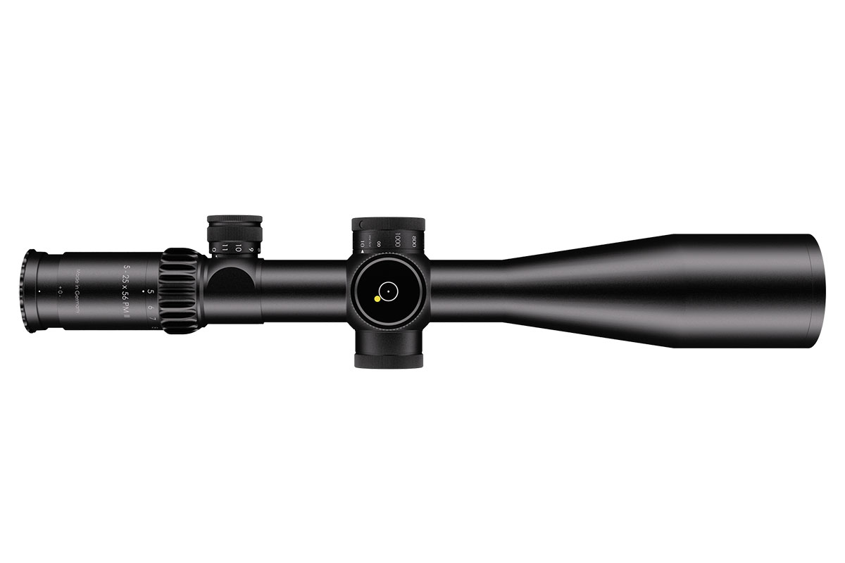 4060537065329 The 5‑25×56 PM II from Schmidt and Bender stands at the pinnacle of variable‑magnification tactical optics, engineered for long‑range precision, outstanding clarity and professional‑level reliability. With a wide 5–25× zoom range and a substantial 56 mm objective lens, it delivers exceptional light‑gathering capability, enabling crisp, bright imagery even at extended distances. Built upon a rugged 34 mm main tube, the scope accommodates large internal adjustment ranges and is designed for demanding use. It features a reticle in the first focal plane (FFP) so that scale and hold‑offs remain accurate at any magnification. The field of view spans approximately 5.3–1.5 m at 100 m, while the exit pupil ranges around 11.0–2.3 mm, and the eye relief remains generous at around 90 mm. The parallax adjustment typically extends from 10 m to infinity, enabling accurate focus from very close ranges through to extreme distances. The turret system is engineered for precision: click values as fine as 0.1 mrad (≈1 cm at 100 m) are available, and a double‑turn elevation turret combined with single‑turn windage allows vast usable correction ranges for wind and elevation. Optical transmission exceeds 90 %, and the construction is nitrogen‑filled, fog‑ and waterproof, ensuring full reliability in all climatic conditions. Key Specifications: Magnification: 5–25× Objective Lens Diameter: 56 mm Main Tube Diameter: 34 mm Field of View: approx. 5.3–1.5 m @100 m Exit Pupil: approx. 11.0–2.3 mm Eye Relief: approx. 90 mm Parallax Adjustment: from ~10 m to infinity Click Value: approx. 0.1 mrad (≈1 cm at 100 m) Optical Transmission: > 90 % Crafted in Germany to the highest standards, the 5‑25×56 PM II is the go‑to choice for military, law‑enforcement and competition shooters who demand absolute clarity, mechanical integrity and extreme flexibility in one optic.