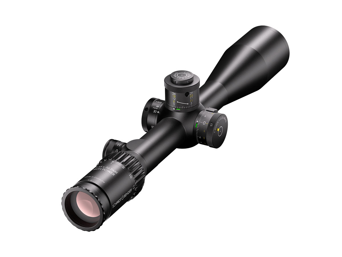 4060537027471 The 5–45×56 PM II High Power is a professional‑grade precision optic that merges a high‑performance riflescope with spotting‑scope capability. Designed for observation and ultra‑long‑range engagement, its enormous 9× zoom range (5–45×) makes it equally at home on reconnaissance, match, or tactical platforms where both identification and shot‑making accuracy are required. Engineered for extreme clarity and reach, the 56 mm objective delivers excellent light gathering while the optical system maintains a large usable field of view across the entire zoom range — allowing fast situational awareness at low magnification and razor‑sharp detail at high power. The reticle sits in the first focal plane, so hold‑offs and subtensions remain precise at any magnification. The model features robust, lockable turrets with fine 0.1 mrad click values and very large usable internal adjustment ranges tailored for extreme‑range correction. Built on a rugged 34 mm main tube, the High Power is constructed for demanding environments: it is fully weatherproof, fogproof and shock‑resistant. Despite its long reach, the design balances mechanical strength with practical ergonomics for field use. Standout Features Exceptional 5–45× magnification range for combined observation and precision shooting Large 56 mm objective for outstanding light transmission and image resolution First focal plane reticle for accurate ranging and holdover at any magnification Precision turrets with 0.1 mrad click value and extensive elevation/windage adjustment range Side/parallax adjustment for crisp focus from mid‑range to extreme distances High optical transmission (~90%) and illuminated reticle options for low‑light operations Robust 34 mm tube, weatherproof and built for professional use Key Specifications Magnification: 5–45× Objective diameter: 56 mm Main tube diameter: 34 mm Field of view: approx. 7.8–0.9 m @ 100 m Exit pupil: approx. 8.8–1.2 mm Eye relief: 90 mm Length: approx. 434 mm Weight: approx. 1,130 g Reticle: FFP (various tactical reticle options) Click value: 0.1 mrad Elevation adjustment range: ~27 mrad (internal ~29.6 mrad) Windage adjustment range: ±6 mrad (internal ~21.1 mrad) Parallax: adjustable Illumination levels: multiple (illuminated reticle available) Optical transmission: ~90% Designed and manufactured to professional standards, the 5–45×56 PM II High Power is the go‑to optic for operators and precision shooters who require unmatched versatility, extreme reach and uncompromising optical and mechanical performance.