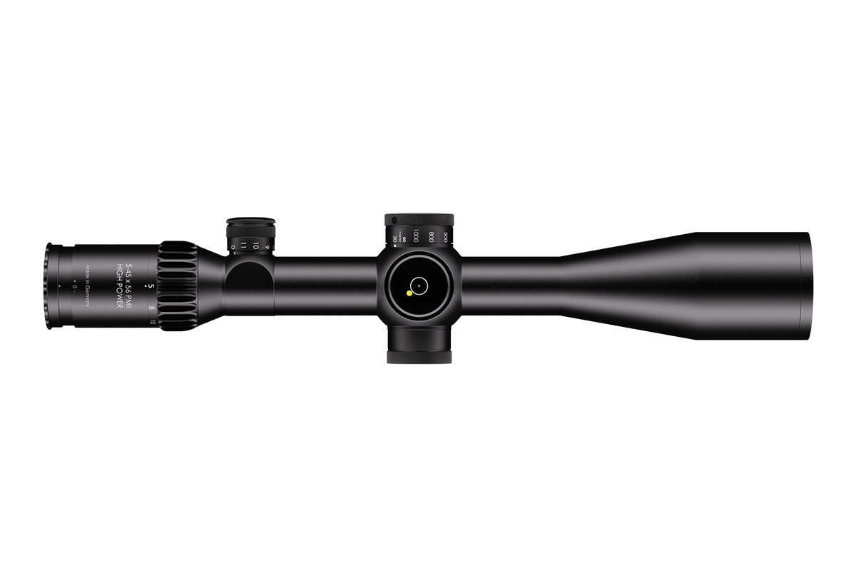4060537014662 The 5–45×56 PM II High Power is a professional‑grade precision optic that merges a high‑performance riflescope with spotting‑scope capability. Designed for observation and ultra‑long‑range engagement, its enormous 9× zoom range (5–45×) makes it equally at home on reconnaissance, match, or tactical platforms where both identification and shot‑making accuracy are required. Engineered for extreme clarity and reach, the 56 mm objective delivers excellent light gathering while the optical system maintains a large usable field of view across the entire zoom range — allowing fast situational awareness at low magnification and razor‑sharp detail at high power. The reticle sits in the first focal plane, so hold‑offs and subtensions remain precise at any magnification. The model features robust, lockable turrets with fine 0.1 mrad click values and very large usable internal adjustment ranges tailored for extreme‑range correction. Built on a rugged 34 mm main tube, the High Power is constructed for demanding environments: it is fully weatherproof, fogproof and shock‑resistant. Despite its long reach, the design balances mechanical strength with practical ergonomics for field use. Standout Features Exceptional 5–45× magnification range for combined observation and precision shooting Large 56 mm objective for outstanding light transmission and image resolution First focal plane reticle for accurate ranging and holdover at any magnification Precision turrets with 0.1 mrad click value and extensive elevation/windage adjustment range Side/parallax adjustment for crisp focus from mid‑range to extreme distances High optical transmission (~90%) and illuminated reticle options for low‑light operations Robust 34 mm tube, weatherproof and built for professional use Key Specifications Magnification: 5–45× Objective diameter: 56 mm Main tube diameter: 34 mm Field of view: approx. 7.8–0.9 m @ 100 m Exit pupil: approx. 8.8–1.2 mm Eye relief: 90 mm Length: approx. 434 mm Weight: approx. 1,130 g Reticle: FFP (various tactical reticle options) Click value: 0.1 mrad Elevation adjustment range: ~27 mrad (internal ~29.6 mrad) Windage adjustment range: ±6 mrad (internal ~21.1 mrad) Parallax: adjustable Illumination levels: multiple (illuminated reticle available) Optical transmission: ~90% Designed and manufactured to professional standards, the 5–45×56 PM II High Power is the go‑to optic for operators and precision shooters who require unmatched versatility, extreme reach and uncompromising optical and mechanical performance.