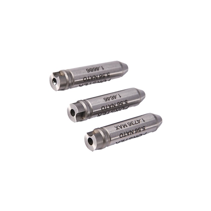 757253989872 Forsterilta, ja vain Brownellsilla, meillä on 5.56 Armorers Headspace Gauge Kit! Tämä sarja sisältää yhden 1.4646” 5.56 Go Gauge -mittarin, yhden 1.4868” keskimittarin ja yhden 1.4736” maksimi kenttämittarin! Nämä mittarit on valmistettu Forsterilla, ja niissä on vähennetty reuna sekä leikattu kohta ejectorille. Tämä mahdollistaa mittarin käytön ilman, että lukkoa tarvitsee purkaa.Toimitusaika noin 2-4 viikkoa.