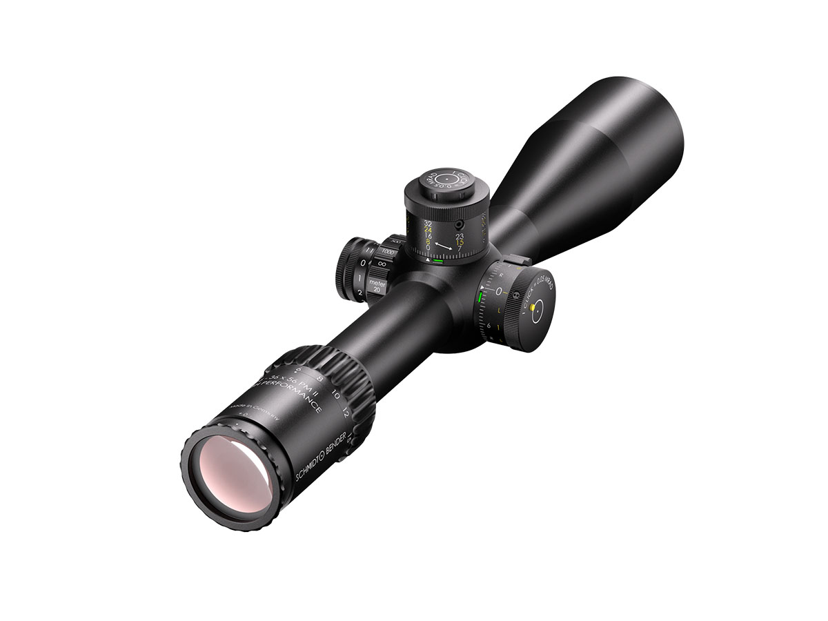 4060537069310 The 6‑36×56 PM II High Performance from Schmidt and Bender is a benchmark optic engineered for serious medium‑ to extreme‑long‑range shooting. With its expansive 6–36× magnification range and a generous 56 mm objective lens, it delivers exceptional clarity, reach and flexibility for demanding applications. Crafted on a robust 34 mm main tube, the scope is compact in length (approx. 390 mm) and relatively light for its class (around 940 g), yet built with the ruggedness and precision befitting the PM II series. The first‑focal‑plane (FFP) reticle ensures accurate hold‑overs, ranging and subtensions at every magnification level. With a transmission rating of well over 90 %, the optical system offers bright, high‑resolution imagery critical for target recognition at extended distances. Its field of view spans about 7.3–1.3 m @100 m, and the exit pupil ranges from approximately 8.3–1.6 mm, providing both wide situational awareness at lower magnification and finely‑detailed views at higher zoom levels. The eye relief is approximately 90 mm, ensuring comfortable viewing across shooting positions. The turret system features ultra‑fine 0.1 mrad click values, and the internal adjustment ranges exceed 40 mrad, giving the shooter a massive envelope for elevation and windage correction. The scope’s innovative “LPI” (Illuminated‑Parallax‑Integrated) system enhances usability, including left‑hand shooter compatibility and more mounting flexibility. Key Specifications: Magnification: 6–36× Objective Lens Diameter: 56 mm Main Tube Diameter: 34 mm Field of View: approx. 7.3–1.3 m @100 m Exit Pupil: approx. 8.3–1.6 mm Eye Relief: approx. 90 mm Transmission: >90% Click Value: ~0.1 mrad Length: approx. 390 mm Weight: approx. 940 g Designed and manufactured in Germany with highest precision, the 6‑36×56 PM II High Performance is ideal for professionals, competition marksmen or hunters seeking top‑tier optical clarity, mechanical integrity and flexibility across distances that demand elite performance.