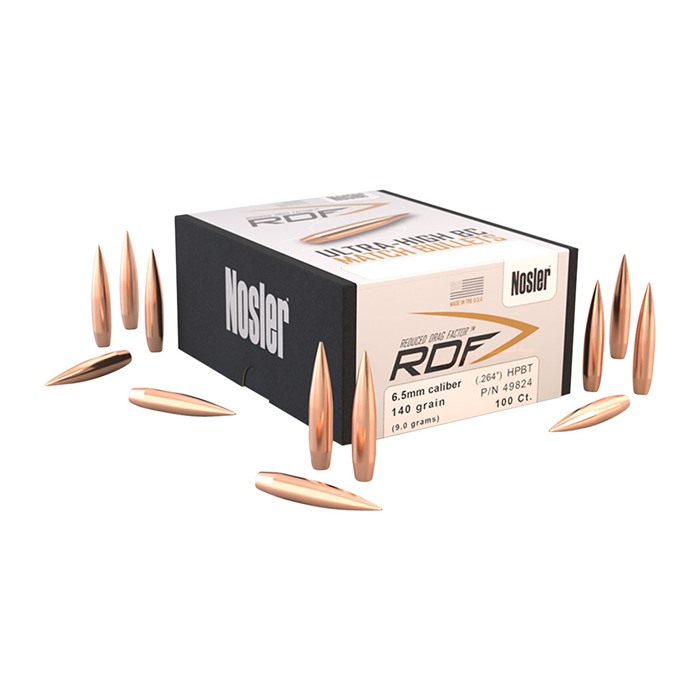 NOSLER REDUCED DRAG FACTOR (RDF) 6.5MM (0.264") HOLLOW POINT BOAT TAIL RIFLE BULLETS tarjoavat ylivoimaisen suorituskyvyn ja tarkkuuden. Nämä kuulat on suunniteltu luomaan mahdollisimman tasainen lentorata ja minimoimaan tuulen vaikutus.