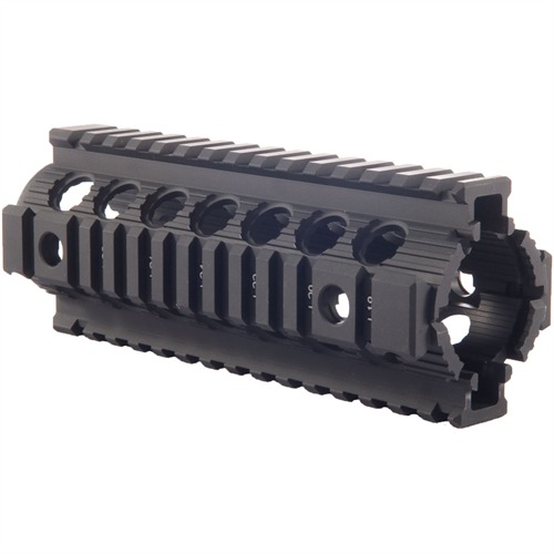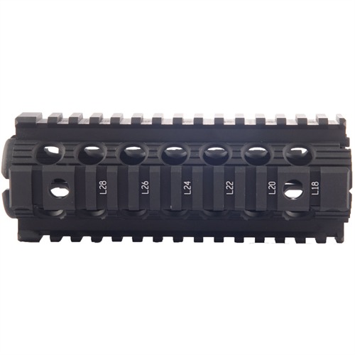 Direct, drop-in replacement for factory plastic handguard provides the accessory mounting benefits of the free-float Modular Rail Forend without removal of the delta ring. Secure clamping design installs in minutes and gives a rock-solid mount for optics and other accessories. Four positions for 360° pushbutton sling swivels; numbered cross slots. Removable bottom rail allows installation on rifles equipped with M203 Grenade Launcher.