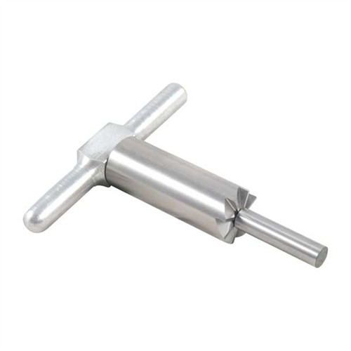 Hardened steel -materiaalista valmistettu 90° facing cutter tasoittaa piippua lyhentämisen jälkeen; tai sitä voidaan käyttää kolhujen ja vaurioiden korjaamiseen. Tuote sisältää kahvan ja yhden pilotin, kaikki pakattuna polypropeeniseen laatikkoon. Vaihdettavat pilotit pitävät cutterin oikeassa linjassa. Osta ylimääräisiä piloteja, jotta voit käyttää yhtä cutteria monille eri kaliibereille. Pilotteja muille kaliibereille on saatavilla erikseen.