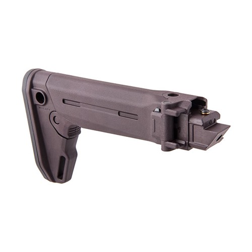 The Magpul Zhukov-S Stock is a no-compromise folding stock for the modern AK. The Zhukov-S Stock casts aside traditional AK stock shortcomings and offers a folding, collapsible stock with QD sling mounts, modular Cheek Risers (sold separately), 5-position telescoping and a shock-absorbing rubber butt-pad for superior traction. The Zhukov has right-side folding for compatibility with side-mounted optics. Designed to fit most common stamped AK receivers without modification via a unique wedge block, the durable injection molded polymer Zhukov-S Stock redefines the human interface with the AK platform. Does not fit milled or Yugo AK's.