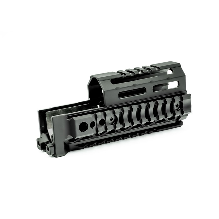 Midwest Industries on kehittänyt seuraavan sukupolven AK Drop-In -käsikahvoja Alpha Quad Rail -muodossa! Tämä tuote on suunniteltu tarjoamaan täyttä joustavuutta, ja se on yhteensopiva täyden käsikahvan, vain alahandguardin, MI AK Alpha Series -optisten lisävarusteiden sekä raudoitetun kaasuputken kokoonpanojen kanssa.