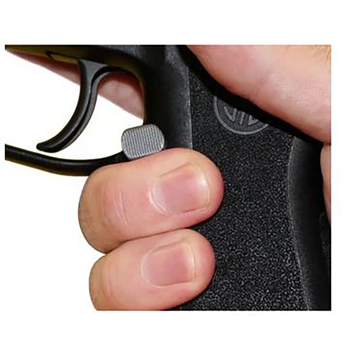 Lisääntynyt vipuvoima auttaa ylläpitämään ampumaotteen ilman, että asetta tarvitsee siirtää kädessä latauksen aikana. Suurennettu painopinta ulkonee 2 mm (0.08") pidemmälle ja on sijoitettu korkeammalle kahvakehykseen, mikä mahdollistaa varman aktivoinnin samalla kun se vähentää peukalon liikettä.