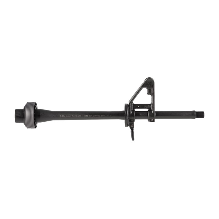 Introducing the Brownell’s Retro A1 12.7" carbine length barrel assembly. Chambered in 5.56x45mm NATO, the chrome lined barrel is available with your choice of 1-7" or 1-12" rifling and finished in black phosphate with an overall length of 12.7”. Muzzle threads are ½""-28, and in back there's a standard barrel extension. Each Retro A1 12.7" carbine barrel assembly includes a front-sight base, .625", no F marks, complete with sight post, detent, spring, sling swivel, rivet, flat Delta ring, barrel nut, weld spring, snap ring, and round handguard cap installed. Machined from 4150 chrome moly steel. The barrel you need for your next Retro Rifle build!