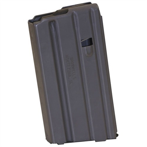 BROWNELLS AR-15 20RD MAGAZINE SS 223/5.56 A battle rifle is only as reliable as its magazine – make sure the one in your rifle is from Brownells. When the difference between a “bang” and a “click” is life and death, a magazine failure is more than inconvenient – it can be fatal. So when we decided to build our own AR-15/M16 magazines, reliability was our first priority. Some of us have sons and daughters serving overseas or in law enforcement, and we aimed to build the kind of magazine we’d trust their lives with. We started with a clean slate, then worked out the bugs on the drawing board and the test range before we offered a single mag for sale, so you get a magazine of uncompromising quality and reliability that’s built to last and ready to run hard. When failure is not an option, these magazines deliver on the range, in the field, in a tactical situation, under fire. Load these smooth-feeding magazines to maximum capacity. No jams, no misfeeds, no hangups. All components are made of mil-spec materials and are manufactured under strict, ISO quality control standards. The heat-treated, welded aluminum body is hard-anodized for superior corrosion resistance, then given a tough, dry-lube coating to eliminate the need for additional lubricants that would attract dust, sand, or dirt. The latest military-type, glass-fiber reinforced composite follower further guarantees flawless feeding in the harshest tactical conditions. Available in standard military Gray. Since we manufacture these mags ourselves, we can maintain a large inventory. So, if you need magazines in a hurry, even in quantity, we can get them to you ASAP. SPECS: Aluminum body Hard-anodized, dry-lube coating. Fiberglass-filled plastic follower. Available in stainless steel (SS) spring. 20-round magazines capacities.