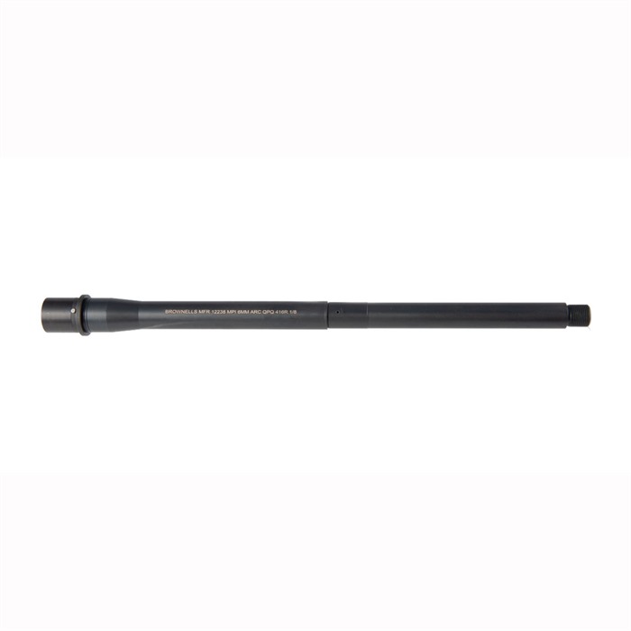 To fully take advantage of the performance of the 6mm ARC cartridge Brownells has teamed up with Faxon to offer these AR-15 6mm ARC barrels. Made from 416R stainless steel and finished with a black Nitride finish, these come in a heavy profile with a 1-8 5R twist rate, and 5/8-24 muzzle threads. Available in four different lengths here are the associated specifications: 14.5” length with Carbine length gas system and 0.069” gas port diameter 16” length with Mid-Length gas system and 0.079” gas port diameter 18” length with Mid-Length gas system and 0.079” gas port diameter 20” length with Rifle length gas system and 0.085” gas port diameter Regardless of what barrel length you choose each barrel follows the same following specs: 1-8 5R twist .750” gas block diameter Heavy profile 5/8-24 muzzle threads 416R stainless steel Black Nitride finish