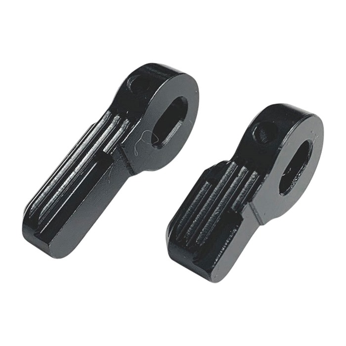 683828757495 ASF-90Q on perinteinen (käännä 90 astetta FIRE/SEMI) puoliautomaattinen valitsin, jossa on q (offset) vipuja. ASF (Ambidextrous Selector, Forward Controls) ja SOLGW:n The Quick ovat yhteinen projekti FCD:n ja SOLGW:n välillä. ASF suunniteltiin alusta alkaen puolustus-/työ-/taisteluvaihtoehdoksi, ja sen tehtävä näkyy selvästi vipujen kiinnityksessä keskelle, ruostumattomasta teräksestä valmistetun rullapinon avulla. Vipu-keskusliittymä on äärimmäisen vahva, korkean leikkauslujuuden (800 lbs) 420 ruostumattomasta teräksestä valmistettu jousiteräksinen rullipino pitää vain kaksi paikallaan, eikä se kestä mitään kuormaa. Yksi suunnittelutavoista edellyttää, että vipujen ja keskuksen välillä on mahdollisimman vähän tai ei lainkaan heiluntaa; Forward Controls Design vaati erittäin tiukkoja toleransseja (+0.001/-0.00) ASF:n vipu- ja keskusliittymälle tämän saavuttamiseksi. HUOM: +/- 0.002 yhdistetty toleranssi (+/- 0.001 vipujen ja keskuksen vipukiinnitysliittymässä) voi harvoin osoittaa pieniä liikkeitä; tämä on normaalia ja vältettävää, 0.002 liikettä on lähes huomaamatonta eikä vaikuta ASF:n toimintaan. Q-vipuja ovat offset-vipuja, siirtämällä vipua lähemmäksi ampujan peukaloa, kun valitsin on SEMI/FIRE-asennossa, se mahdollistaa käyttäjän kääntää sen helpommin takaisin SAFE-asentoon ilman, että ote muuttuu. Tämän vuoksi q-viput ovat sivukohtaisia; q-vipun "jalka" tulisi aina kallistaa ylöspäin. Kun valitsin on SEMI/FIRE-asennossa, q-vipu näyttää kirjaimelta q (siksi sen nimi). Forward Controls Design tunnetaan monille käytetystä kuplamallista, jota he käyttävät joillakin ohjauspinnalla (AA, tai All Angles, on nimitys). ASF-viput ovat uurrettuja, eivät kuplamallisia. Kun vipu kääntyy, käyttäjän sormi liukuu vipua pitkin; kaikki muu kuin uurteet vipun pituuden varrella vain haittaa liikettä ja luo kitkaa ilman hyötyä. Uurteet, jotka ovat vinossa tai kohtisuorassa vipun pituuden suuntaan, ovat myös avuttomia. Uurteet, jotka ovat rinnakkaisia vipun pituuden kanssa, auttavat vähentämään sivuttaisliikettä, eivätkä ne estä sormien liukumista. ASF-vipun profiili ei ole neliömäinen; sen ulompi osa on hieman kapeneva syystä. Kun käyttäjän käsi pitää pistooleista, ASF-vipun profiili mukautuu peukalon tyynyn kulmaan. Ystäville ja asiakkaille, jotka haluavat nähdä kuplia ASF:ssä, on molemmilla puolilla yksi kupla, joka toimii sijainti-indikaattorina (osoittimen sijasta); se on tyylikäs ja yksinkertainen. ASF toimitetaan valitsinjousen, KNS-nitridoidun valitsintapin, kahden vipun (tai yhden vipun, jossa on päätykansi), 4 rullipinoa (kaksi tarvitaan asennukseen, 2 varaosana) kanssa. ASF-keskukset on valmistettu 8620:sta, lämpökäsitelty ja mustan nitridoitu. Vipuja valmistetaan 8620:sta ja mustan nitridoitu. ASF on yhteistyö Sons of Liberty Gunworksin kanssa. Valmistettu Yhdysvalloissa.Jälkitilaus, toimitusaika n. 4-12 viikkoa USA:n varastosta.