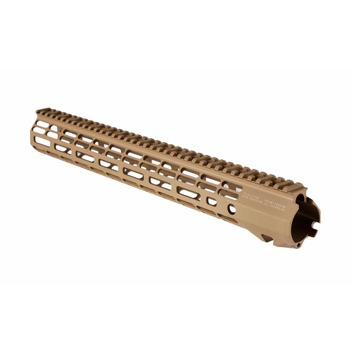 The ATLAS R-ONE is the newest addition to the Aero Precision Handguard lineup. Machined from 6061-T6 Aluminum, the R-ONE line of handguards are designed with size and weight in mind, providing the perfect handguard for your lightweight build. Our proprietary ATLAS attachment system is a durable and dependable mounting platform, maintaining a slim profile while still providing the strength and stability customers have grown to love from Aero Precision handguards. Available in KeyMod and M-LOK® profiles with 12" and 15" options (7" and 9" options coming soon). ATLAS The new Aero Taper Lock Attachment System (ATLAS) is both functional and aesthetically pleasing. It features 2 mirrored tapered locking nuts that provide evenly distributed clamping pressure across a custom engineered barrel nut with use of a turnbuckle screw. A ratcheting detent further secures the design while providing positive registration during installation. By design, the even pressure of the ATLAS system avoids distortion of the handguard often seen with current applications during installation. All hardware mounting parts are included with the purchase of an ATLAS Handguard. Lightweight By Design KeyMod Handguard Weights: 7" - 5.12 oz / 9" - 5.92 oz / 12" - 7.84 oz / 15" - 8.96 oz M-LOK Handguard Weights: 7" - 5.22 oz / 9" - 6.03 oz / 12" - 8 oz / 15" - 9.07 oz Mounting Hardware Weight: 4.72 oz (same across all ATLAS Handguard options) Features: Full top picatinny rail for optional attachments Quick disconnect sling socket at the 3, 6 and 9 o'clock positions Compatible with low profile gas blocks 1.3" Inside diameter 1.5" Outside diameter Compatible with mil-spec AR15 upper receivers and barrels ATLAS Handguards are designed to match seamlessly with our M4E1 Threaded Upper Receivers. Additionally, they are compatible with any Mil-Spec AR-15 upper receivers as well. However, they may not be compatible with billet upper receivers due to indexing tabs. Save when you buy them as a combo.
