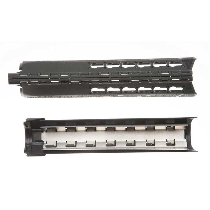 The BCMGunfighter™ PKMR KeyMod™ Rail handguard provides a secure, inexpensive, easy-to-install platform for mounting KeyMod-compatible weapon lights, laser sights, vertical grips, or other accessories. Constructed of rugged yet lightweight reinforced polymer, the Bravo Company PKMR is a drop-in replacement for the standard military-type plastic handguard. With its slim profile, the BCMGunfighter PKMR KeyMod Rail handguard provides more natural ergonomics than the standard-issue plastic ’guard for improved control and more comfortable shooting. Textured areas on the PKMR provide an extra-secure grasp in all kinds of weather, whether you’re wearing gloves or not. Rows of KeyMod™ mounting slots at 10:30, 1:30, and 6:00 positions Mounting areas are reinforced for enhanced accessory support Built-in handstop up front helps you position your hand consistently Carbine-Length fits round M4-type handguard caps only Mid-Length (9" OAL) fits rifles with mid-length gas system and triangle M16 type handguard caps Both models available in Black or Flat Dark Earth Inside the Bravo Company BCMGunfighter PKMR KeyMod Rail handguard is an aluminum heat shield on the bottom that protects your hand barrel heat during sustained fire.