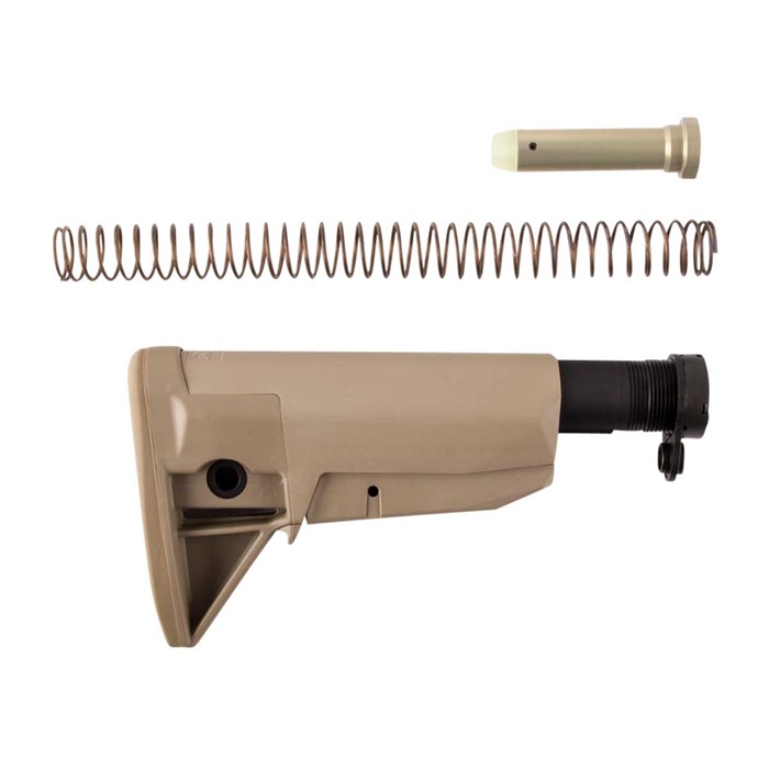 - Tarkista, että kaikki osat ovat mukana: BCM GUNFIGHTER Mod 0 perä, 7075 T6 MilSpec vastaanottimen jatke, linssimutteri, MilSpec karbiinitoiminnan jousi, karbiinivaimennin ja QDkiinnityslevy.