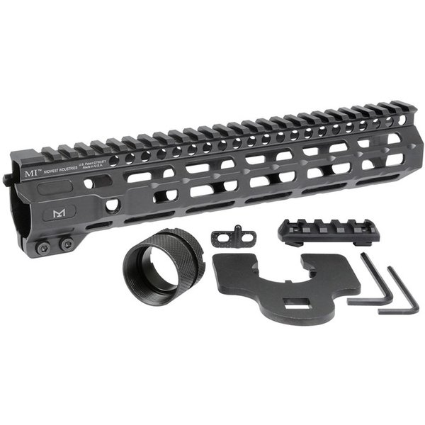 Midwest Industriesin Combat M-LOK Rail Handguard sisältää lämpökäsitellyn piippupultin ja asennusavaimen. Kahvassa on seitsemän riviä M-LOK-yhteensopivia kiinnityspisteitä, ja sen yläosassa on jatkuva Picatinny-rauta optiikoille ja muille lisävarusteille. Kahvassa on myös kaksi erillistä pikakiinnityslenkkipaikkaa, joissa on anti-rotation-muotoilu.