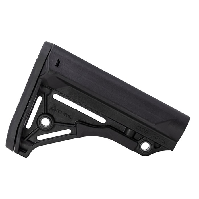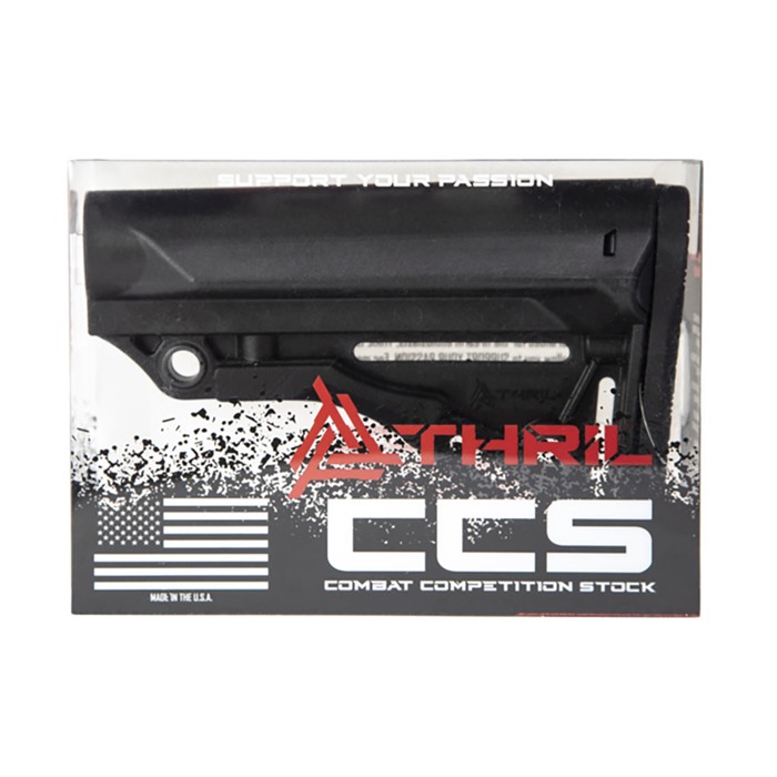 Who wants to run a mil-spec carbine buttstock these days? Not when you have options like this THRiL CCS AR-15 Competition Stock. It might say ""Competition,"" But this thing is built for battle, too, thanks to its feature-rich, lightweight design. By adding this THRiL CCS AR-15 Competition Stock to your rifle, you get three different sling-attachment slots, as well as two rotational quick-detach sling-swivel cups. The stock features an oversized cheek piece that gives you a comfortable, natural point to rest your face as your bring your carbine up into action. If that's not enough, the stock is also compatible with THRiL's adjustable cheek piece! Best of all, this lightweight CCS AR-15 Competition Stock features a snag-free latch design, so you don't have to worry about your stock adjustment tab getting caught up in your gear or adjusting your stock outside of your comfort zone accidentally. The stock is also available in black, dark earth or gray, so you can match the rest of your gun's furniture.
