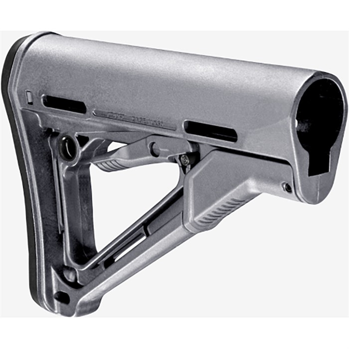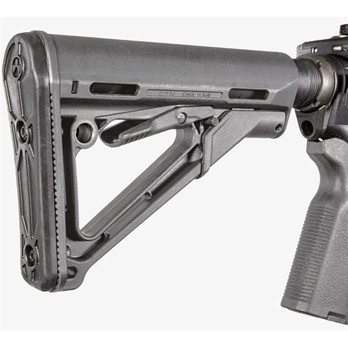 MAGPULin AR-15 CTR COLLAPSIBLE MIL-SPEC CARBINE STOCK on suunniteltu tarjoamaan maksimaalista mukavuutta ja vakautta. Tämä harmaa tukki on varustettu innovatiivisella lukitusjärjestelmällä, joka eliminoi liikkeen puskuriputken ja tukin välillä, tarjoten tukevan tuntuman aseesi olkapäälle kiinnitettynä.
