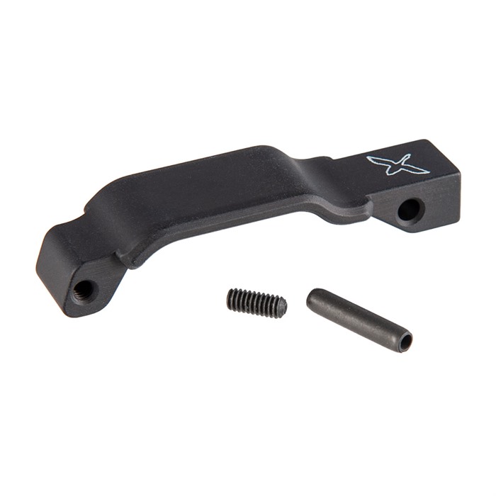 TGF (Trigger Guard, Forward Controls) Winter, BLK is machined from 7075 aluminum and Type III anodized black, it does not have a spring-loaded detent for the front, but use a set screw like Magpul's, and a standard trigger guard roll pin in the rear. We retained the use of roll pin for TGF's rear, as it's reliable and robust, it also will not loosen. The front set screw is flush with the receiver and doesn't protrude. Both versions feature a canted front edge to make rocking the magazine into the mag well easier. The winter version has as much constant/unchanged space from the trigger bow forward as possible (instead of the space inside tapering and decreasing as the trigger guard nears the receiver's front trigger guard holes). The space to the rear of the trigger bow is inaccessible for the user's finger, so it's kept small and low. TGF is designed for use with TDP spec forged lower receivers, and fills the gap forward of the pistol grip, between the trigger guard "ears" (note that TGF will not swing down like TDP spec trigger guards). All the sharp edges and corners have been removed. TGF is proudly designed and made in the USA. A trigger guard roll pin and set screw (for the front) are included. A 1/16 Allen wrench is required (not included). 7075 billet trigger guard for AR-15/M16 Enlarged space for gloved trigger finger Hard coat Type III anodized black Includes Set screw and roll pin Color: Black, FDE, or OD Green