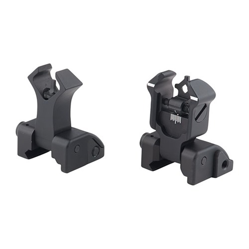 857880003115 Käännettävät varasilmät hyödyntävät ainutlaatuista timantin muotoa, joka tarjoaa tarkat viitepisteet auttaakseen silmääsi keskittämään kohteen nopeasti tähtäimiin. Kiinnittyy tukevasti Picatinny-rautaan, lukitusjärjestelmällä, joka varmistaa, että tähtäimet pysyvät ylhäällä turvallisesti ja ovat nollattu oikein. Kun niitä ei käytetä, tähtäimet taittuvat alas napin painalluksella. Etusilmällä on kulmaiset korvat, jotka suojaavat A2-tyyppistä pulttia ja toimivat visuaalisena viitepisteenä. Takasilmällä on kaksitasoiset, samassa tasossa olevat lyhyen ja pitkän kantaman aukot, vaakasuorat valkoiset viiteviivat ja ½ MOA tuuli säätömahdollisuudet. Taittuu ja avautuu joko aukko aktiivisena.Poistettu ohjelmasta