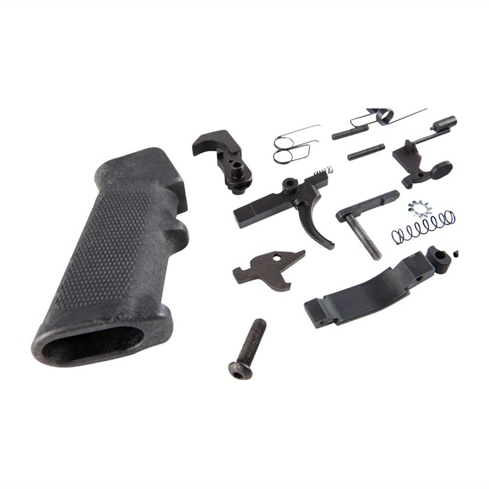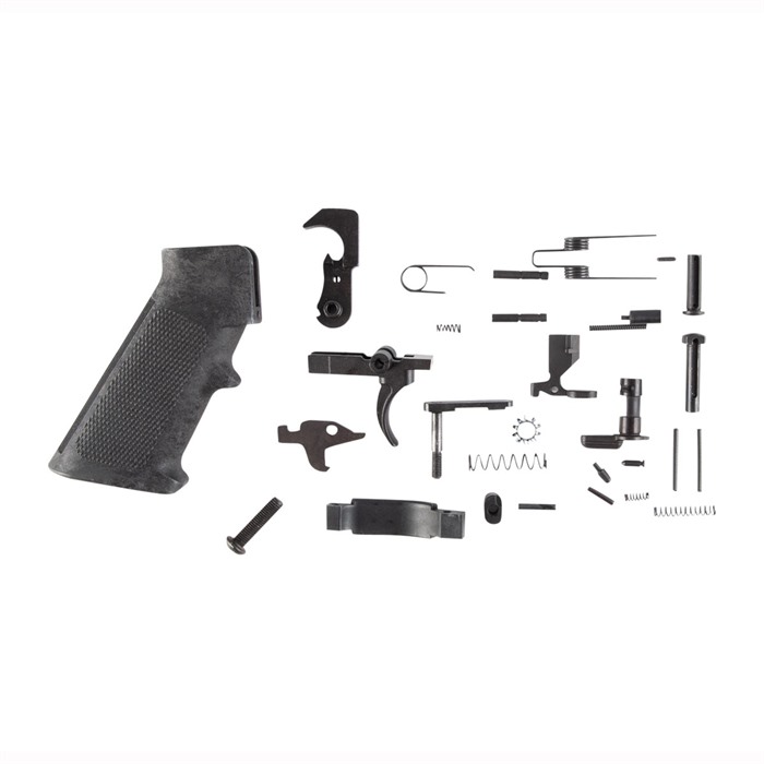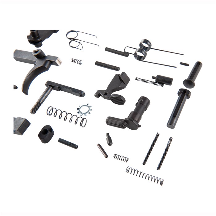 700600851803 KE Arms AR-15 GI Osasarja sisältää kaikki osat, joita tarvitset alarungon kokoamiseen toimivaksi osaksi räätälöityyn AR-15 tai M4 -rakennelmaasi. Kaikki osat valmistettu Yhdysvalloissa. Liipaisinsuoja ja Pistol Grip Liipaisinsuojan kokoonpano - Vahvistettu polymeerinen talvisuojus, kiinnitetään rullapinnalla ja säätöruuvilla helppoa asennusta varten (kuusiokoloavain ei sisälly) Liipaisinsuojan rullapinna A2 Pistol grip - Ruiskupuristettu lasikuituvahvistettu nylon Pistol grip -ruuvi Grip -ruuvin lukitusmutteri - Ruostumaton teräs Tulipalon ohjausryhmä Liipaisin - Investointivalettu ja tarkkuusjyrsitty teräs, magnesiumfosfaattipinnoite Liipaisinjousi - Mustaksi oksidoitu Liipaisin - Investointivalettu ja tarkkuusjyrsitty teräs, magnesiumfosfaattipinnoite Liipaisinjousi - Mustaksi oksidoitu Irrotin - Hienojakoinen ja tarkkuusjyrsitty mustaksi oksidoitu Irrotinjousi - Mustaksi oksidoitu Turvavalitsin - Investointivalettu ja tarkkuusjyrsitty teräs, magnesiumfosfaattipinnoite Valitsinjousi - Mustaksi oksidoitu Turvavalitsimen detentti - Melonite-pinnoitettu teräs Patruunatuki Kokoonpano Patruunatuki - Melonite-pinnoitettu teräs Patruunatukijousi - Mustaksi oksidoitu Pultin pidin Kokoonpano Pultin pidin - Investointivalettu, magnesiumfosfaattipinnoite Pultin pidin -plunger - Melonite-pinnoitettu teräs Pultin pidinjousi - Mustaksi oksidoitu Pultin pidin rullapinna Irrotus/Pivot-pinnakokoonpanot Irrotuspinnadenttispringit (2) - Mustaksi oksidoitu, pidempi kuin normaali, lyhennettävä tarpeen mukaan alarungollesi Irrotuspinnadentit (2) - Melonite-pinnoitettu teräs Irrotuspinna - Melonite-pinnoitettu teräs Pivot-pinna - Melonite-pinnoitettu teräsPoistettu ohjelmasta